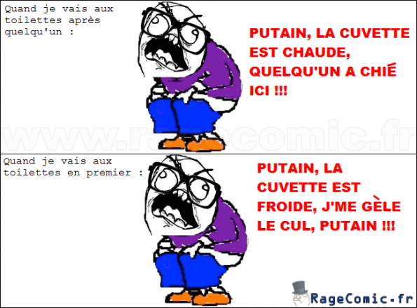 La cuvette des toilettesLe 14 mai 2016 dans Rage Guy (FFFFFUUUUUUUU) par Ragecomicman · Add Comment · vu 354 foisLa cuvette des toilettes, 4.7 out of 5 based on 59 ratings Partager Cet article a été déposé par Ragecomicman.Tagged with → cuvette • ragecomicman • toilettes