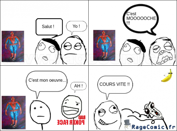 Considérant que c’est fait entièrement à la main et sans ordinateur, je trouve ce dessin très bien fait. Par contre, c’est quoi le problème avec l’entre-jambe ? Il a un caillou à la place du zgeg ?