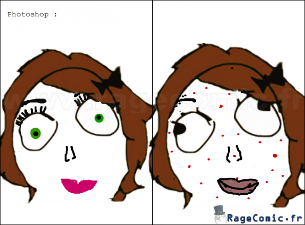 PhotoshopLe 31 mars 2013 dans Non classé par Invité · 1 Comment · vu 5 069 foisPhotoshop, 2.4 out of 5 based on 121 ratings Partager Cet article a été déposé par Ragecomic.Tagged with → belle • moche • montage • Photoshop